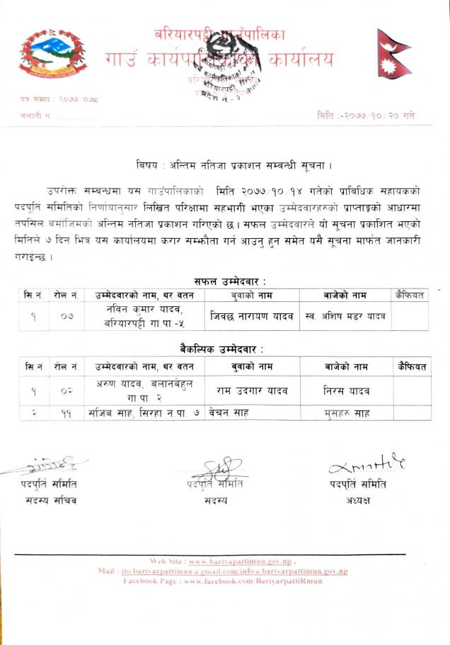 अन्तिम नतिजा प्रकाशन सम्बन्धि सूचना