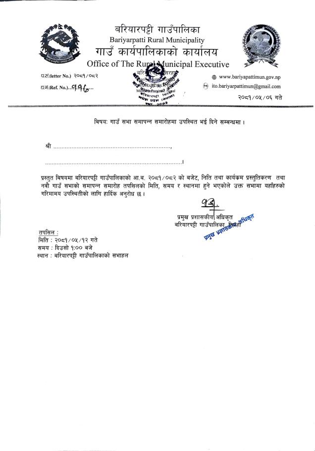 » आर्थिक बर्ष २०८१/०८२ काे नवाैं गाउँ सभामा उपस्थित भई दिने सम्बन्धमा ।