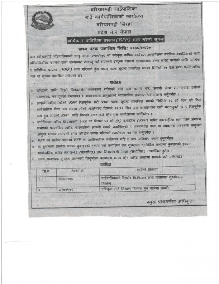 आर्थिक र प्राविधिक प्रस्ताब माग गरेको सुचना