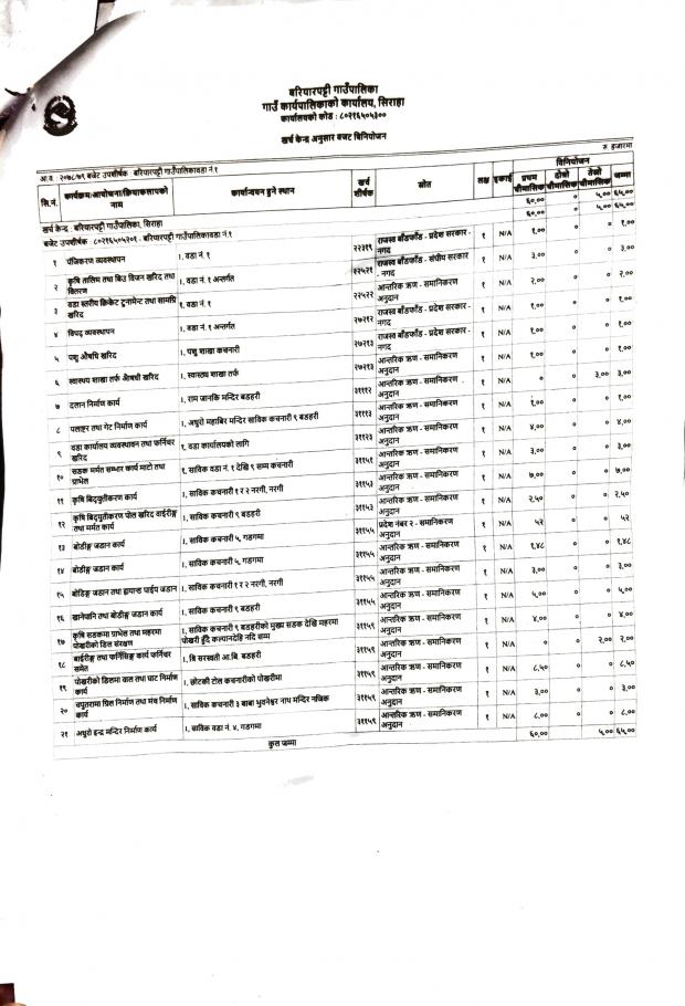 आर्थिक बर्ष २०८०/०८१ को बजेट तथा कार्यक्रम