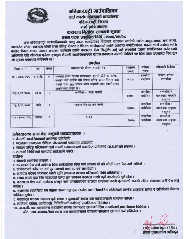 करारमा नियुक्ती सम्बन्धमा सुचना