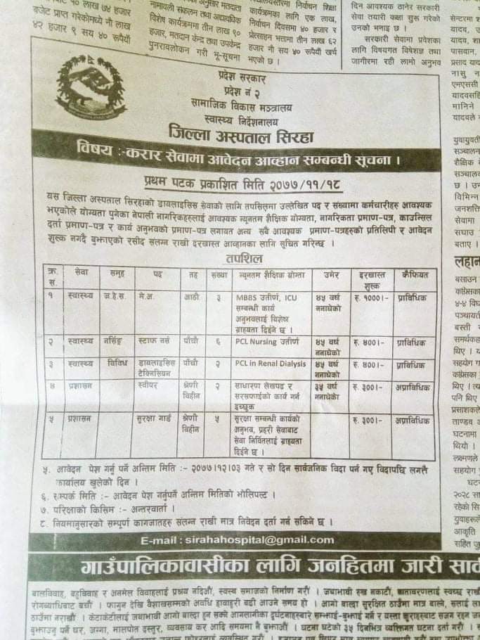 » करार सेवामा आवेदन आव्हान सम्बन्धि सूचना ।