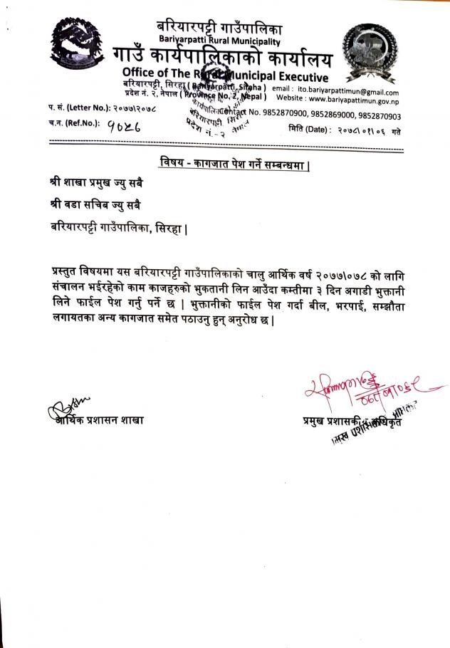 » कागजात पेश गर्ने सम्बन्धमा ।