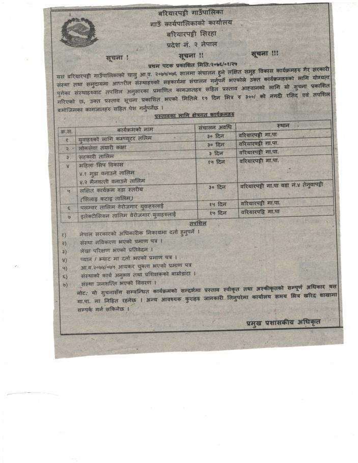 कार्यक्रम संचालनको लागि प्रस्ताब आह्ववनको लागि