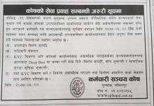 काेषकाे सेवा प्रवाह सम्बन्धी जरूरी सूचना ।(कर्मचारी संचय काेष पुल्चाेक ललितपुर बाट जारी गरिएकाे सुचना)