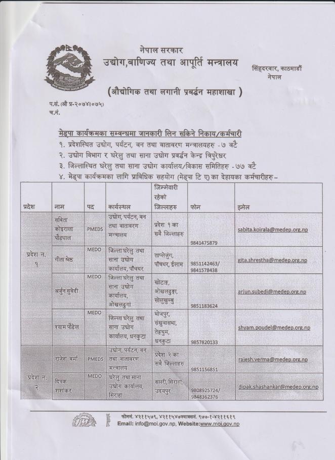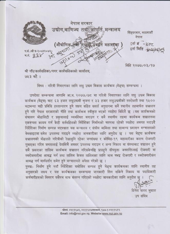 गरिवी निवारणका लागि लघु उद्यम विकास कार्यक्रम (मडेपा) सम्बन्धमा ।