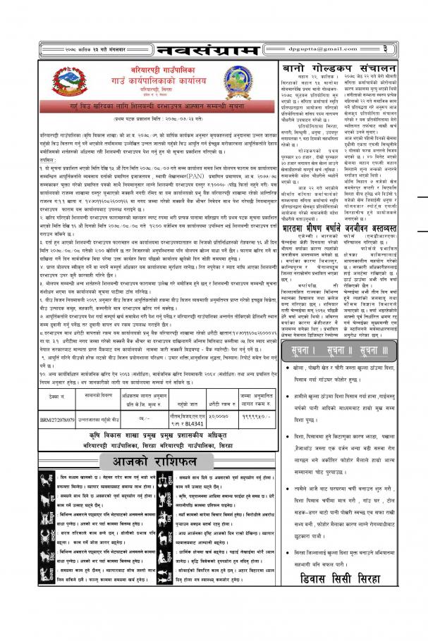 राजपत्रमा प्रकाशित गाँउ प्रहरी संचालन तथा व्यवस्थापन सम्बन्धी कार्यबिधि २०७८