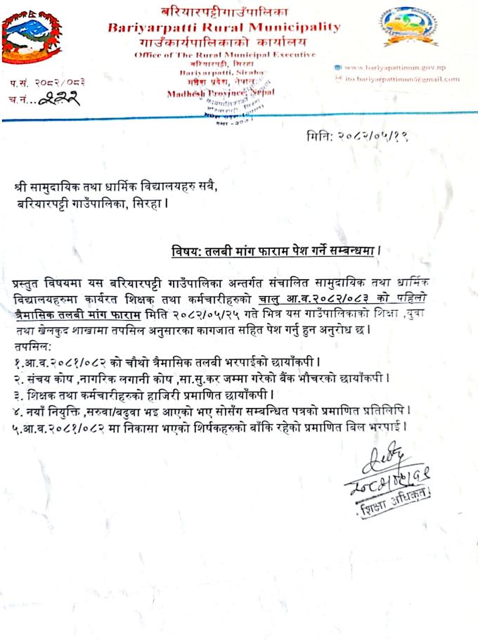तलबी माँग फारम पेश गर्ने सम्बन्धमा ।
