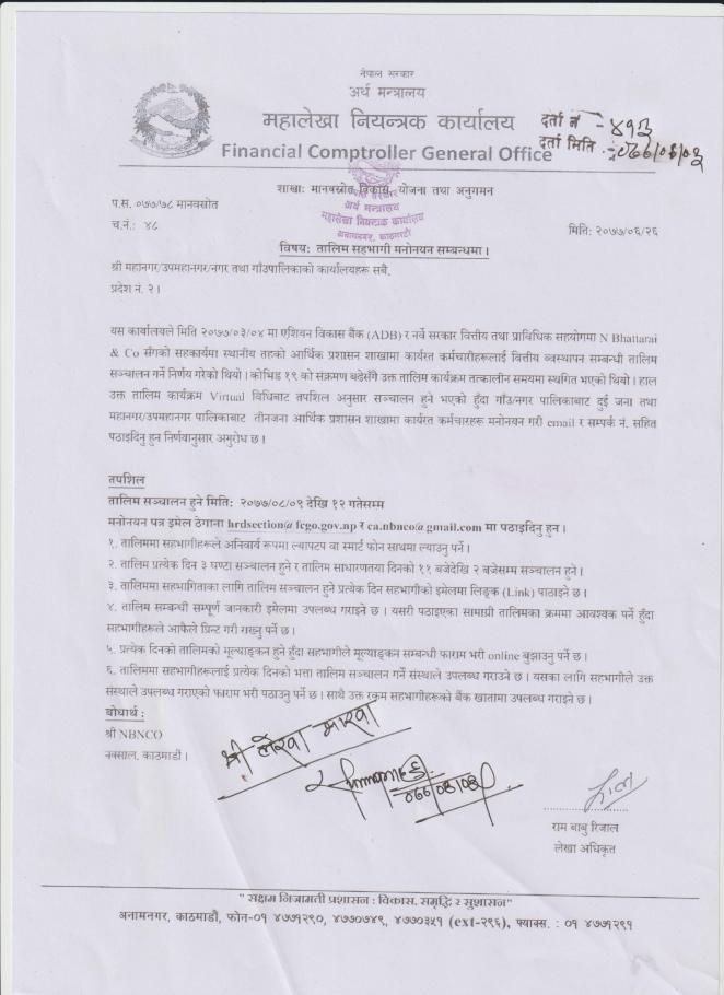 तालिममा सहभागी सम्बन्धमा (श्री लेखा शाखा)