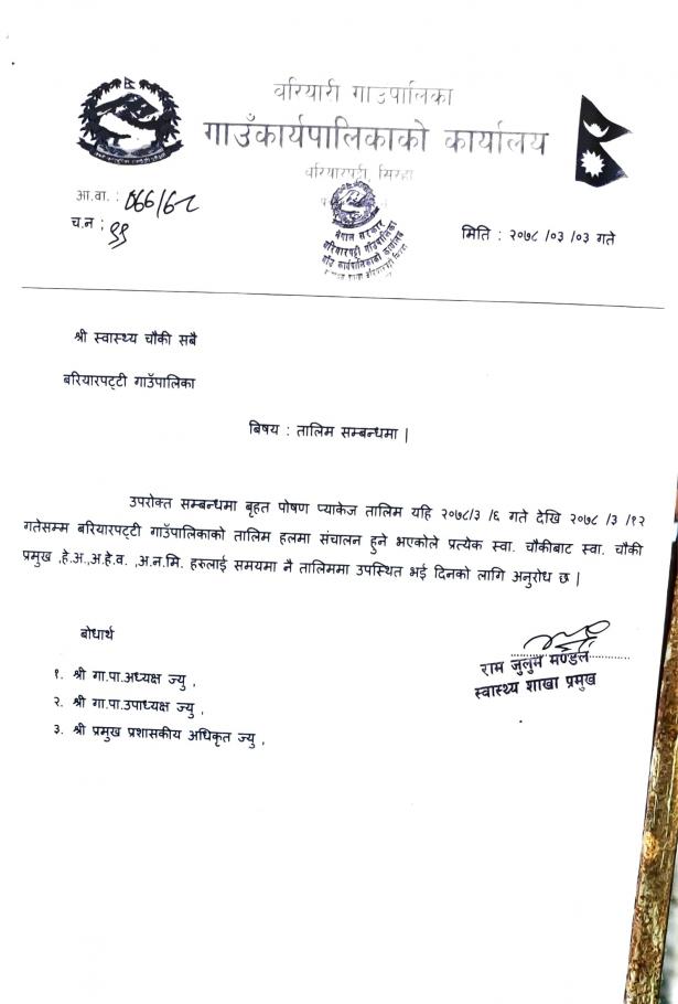 पालाेपहरा र अनकल डयुटी सम्बन्धमा ।