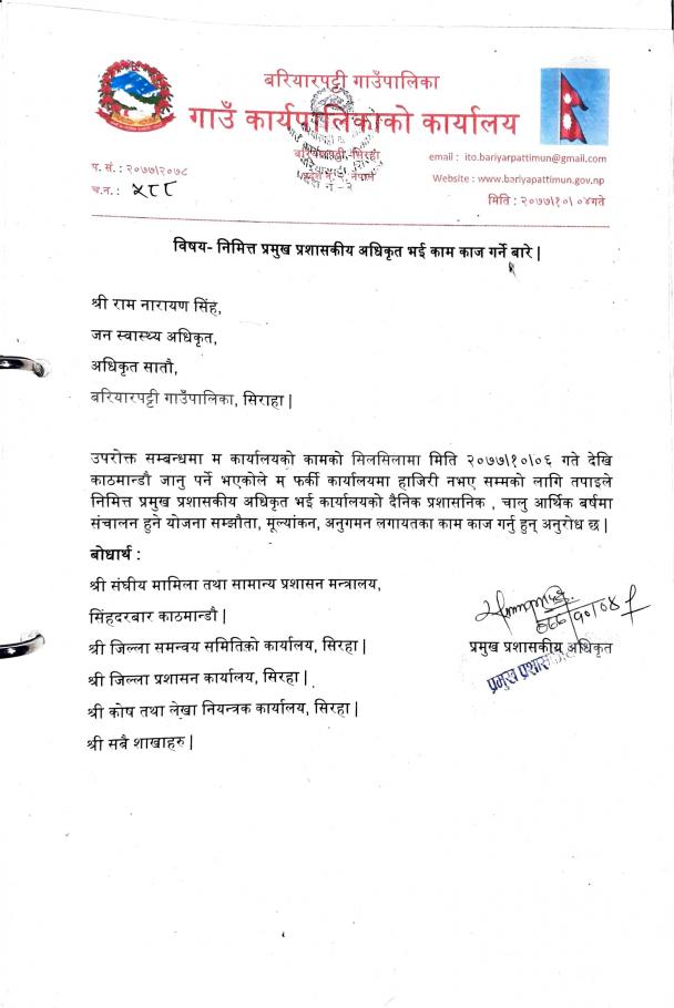 निमित प्रमुख प्रशासकीय अधिकृत भई कामकाज गर्ने सम्बन्भमा