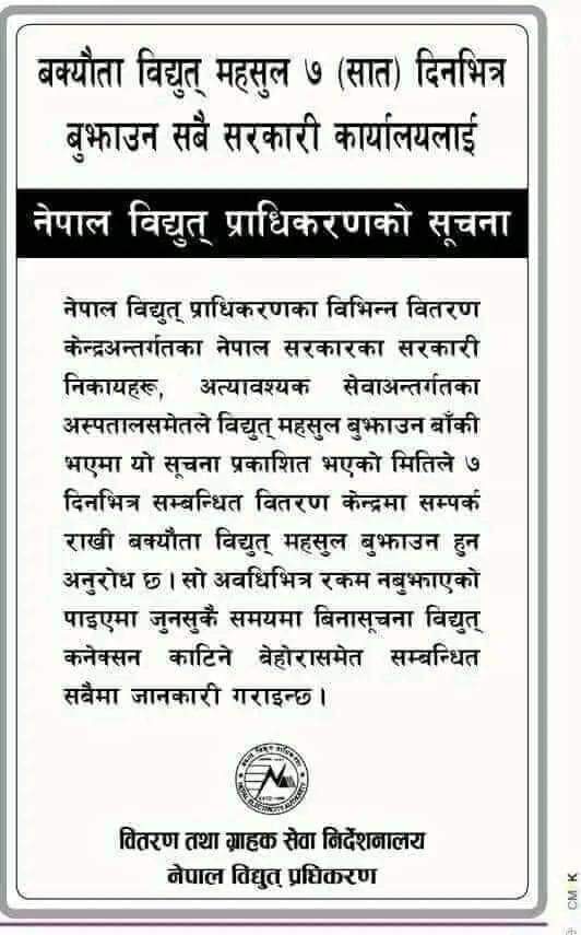 नेपाल विद्युत् प्राधिकरणकाे सूचना ।