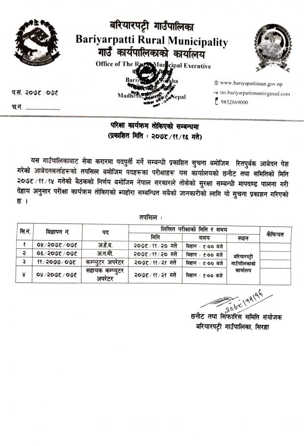 परीक्षा कार्यक्रम ताेकिएकाे सम्बन्धमा ।