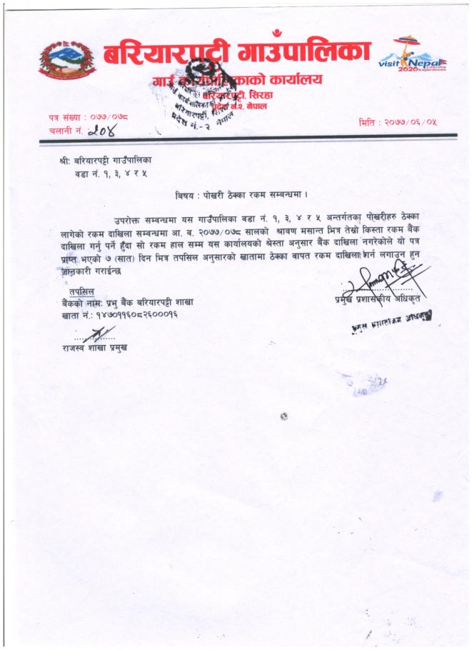 पाेखरी ठेक्का रकम सम्बन्धमा