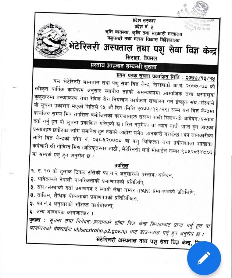 सिलबन्दी बाेलपत्र आह्वान सम्बन्धि सूचना ।