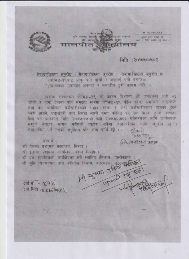 » मालपोत कार्यालय लाहनको सेवा ग्राहिहरुमा अनुराेध ।