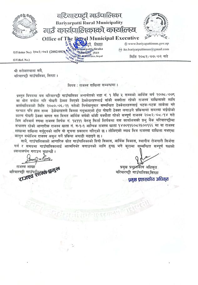 बाेलपत्र स्वीकृत गर्ने आश्यकाे सूचना ।