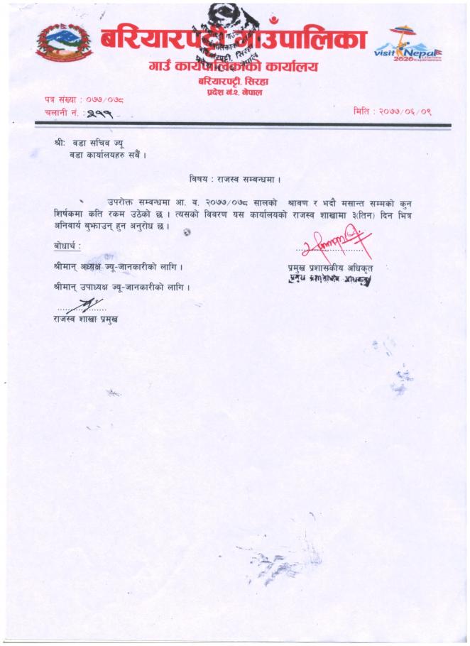 राजस्व सम्बन्धमा ( श्री वडा कार्यालय सबै)