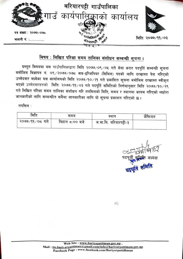 » लिखित परिक्षाकाे म्याद थप सम्बन्धि सूचना