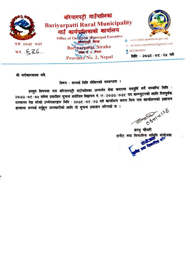 सम्पर्क मिति ताेकिएकाे सम्बन्धमा ।