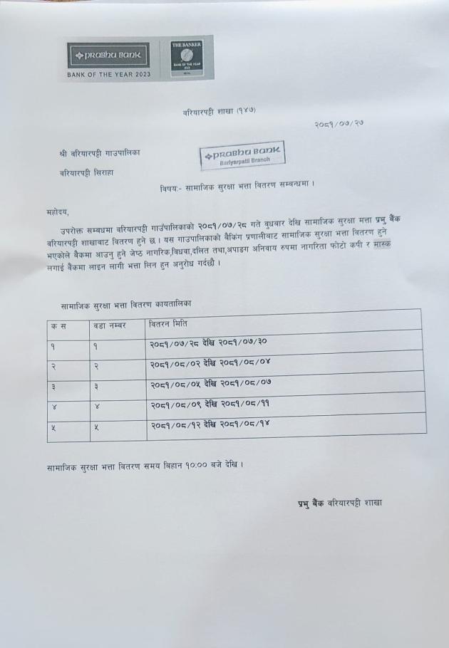 सामाजिक सुरक्षा भत्ता वितरण सम्बन्धमा ।