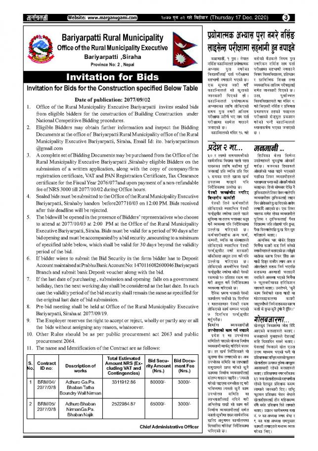 » BRM/04/077/2078 र BRM/05/2077/078 बाेलपत्र मुर्गानुगामिमा प्रकाशित सुचना