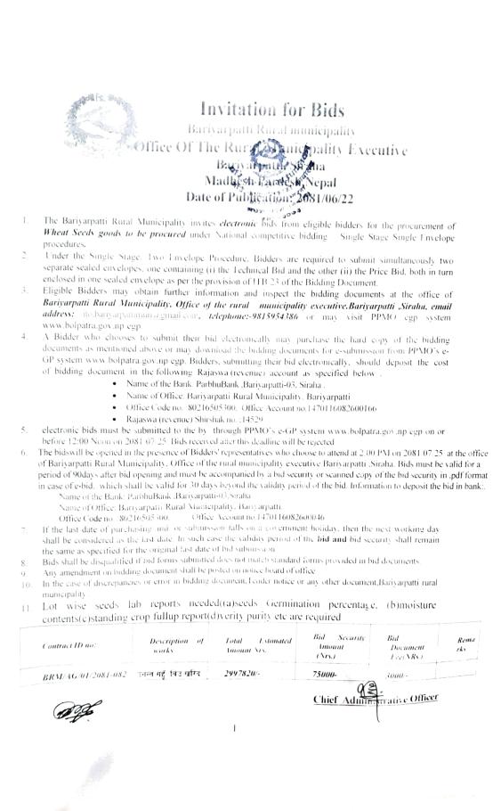 BRM/AG/01/2081/082 काे बाेलपत्रकाे सूचना ।