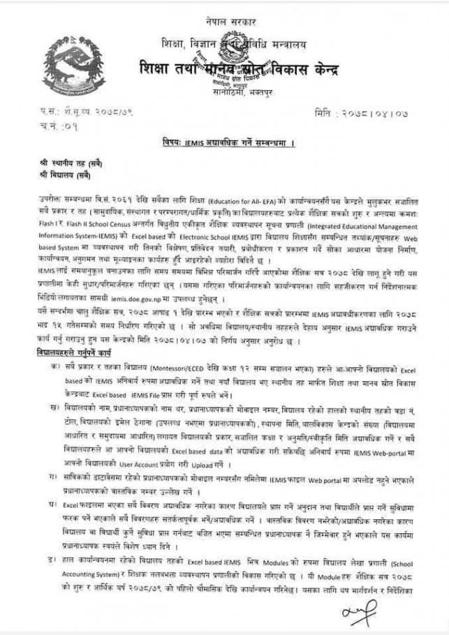 » IEMIS अद्यावधिक गर्ने सम्बन्धमा ।