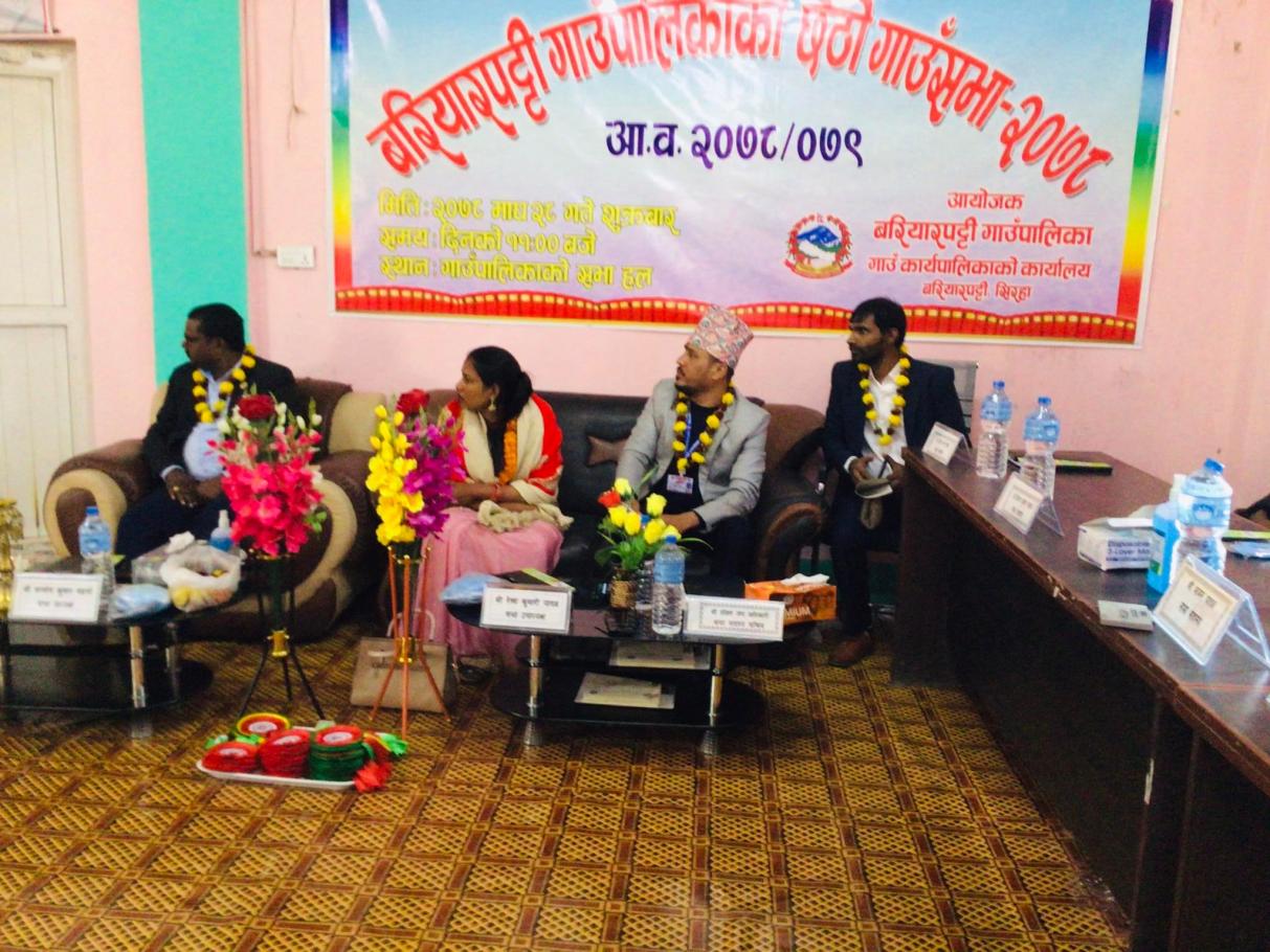 बरियारपट्टी गाउँपालपका विपद् जाेखिम न्यूनिकरण तथा व्यवस्थापन सम्बन्धी अभिमुखिकरण तालिम भइरहेको अवस्था
